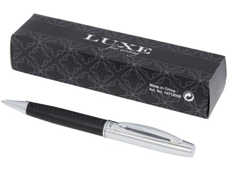 Подарочный набор Scherzo. Эксклюзивная шариковая ручка с обтянутым кожаным материалом корпусом и чехлом из искусственной кожи, упакованная в подарочную коробку LUXE. Металл и искусственная кожа.