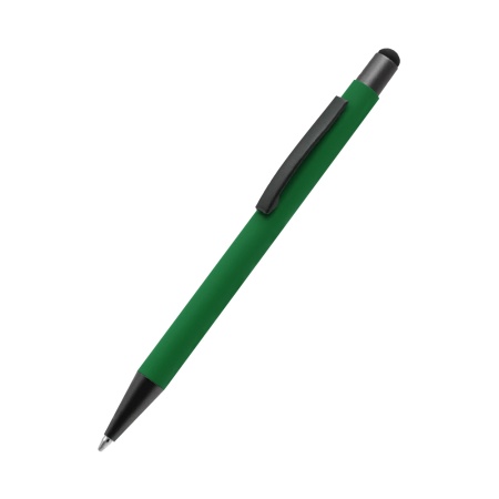 Бархатистая на ощупь ручка Story сотф-тач сделана из металла. Синие чернила, имеет стилус для взаимодействия с портативными устройствами. Толщина пишущего узла 1 мм, длина письма рассчитана на 700 м. Цвет по PANTONE® (максимально приближен): 186 C.