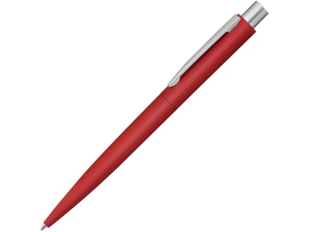 Металлическая шариковая ручка с матовым цветным прорезиненным корпусом. Металлический клип и кнопка в серебристом матовом цвете.
