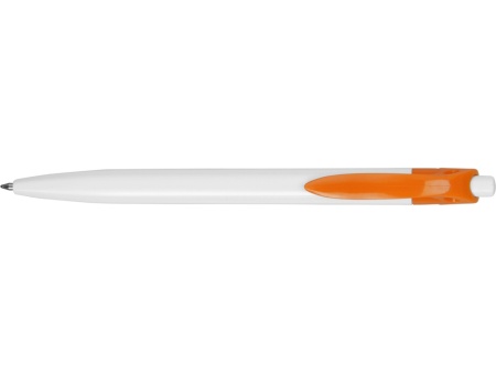 Стильная пластиковая ручка с ярким цветным клипом и белым корпусом отлично подойдет для нанесения логотипов и рекламной информации. Нажимной механизм.
