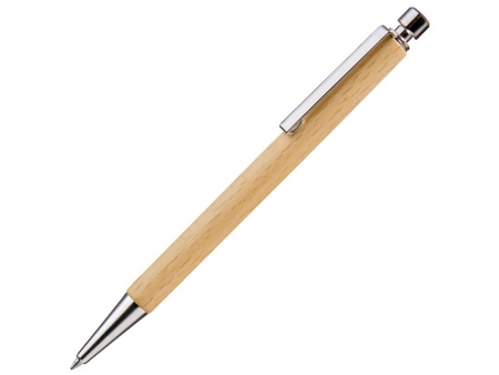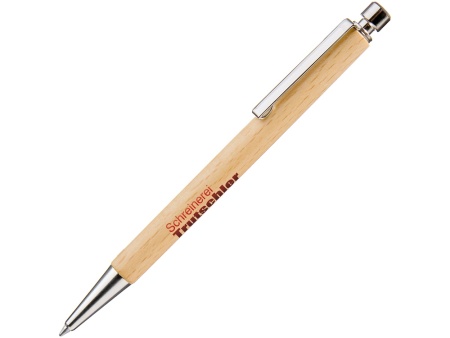 Деревянная шариковая ручка из сертифицированного PEFC массива немецкого бука с никелированным металлическим клипом, металлическим наконечником и металлической кнопкой.
