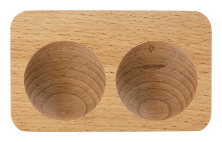 Набор состоит из двух сфер, выполненных из нержавеющей стали, и подставки из дерева, которая позволяет хранить их надлежащим образом и не дает укатываться с полки.