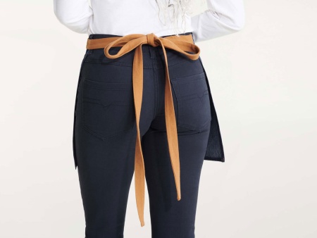 Фартук Dacosta - стильное решение в мини-варианте. Выполнен из джинсы, имеет контрастные завязки на поясе, контрастную строчку и четыре удобных кармана с заклепками, один из которых предназначен специально для шариковой ручки.