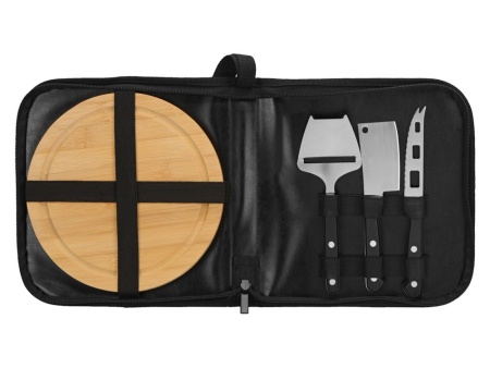 Набор для сыра не изменяет общему стилю Fabrizio: доска и три сырных ножа упакованы в чехол из искусственной кожи, который прекрасно сочетается по текстуре и цвету с другими изделиями серии. Чехол на молнии раскрывается как папка, надежно защищая принадлежности от механических повреждений и позволяя компактно и удобно хранить принадлежности. Для подвешивания и переноски предусмотрена текстильная петля на корешке. Внутри чехол имеет фиксирующие резинки для каждого ножа и доски.