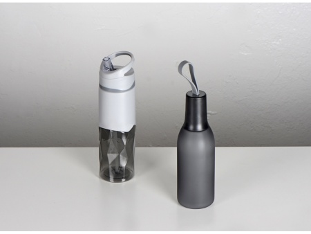 Стильная бутылка на 650 мл. отлично подойдет всем, кто занимается спортом или фитнесом. Благодаря силиконовой петле удобно крепится к рюкзаку или на велосипед. Прочный материал, устойчивый к запахам и загрязнениям. Будет отличным промо-сувениром для фитнес-центра.