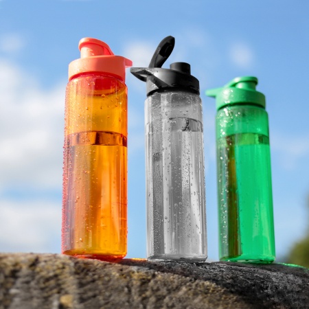 Бутылка для воды Ronny с клапаном. На крышке бутылки имеется крепление, которое позволяет закрепить бутылку на рюкзаке или на поясе.