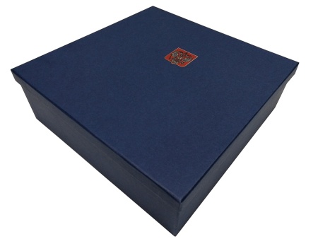Шесть стаканов емкостью 250 мл. с литыми алюминиевыми барельефами Двуглавый орел на щите. Материал барельефа - сплав на основе 97% алюминия. Высокоточное литье под давлением, полировка, выемчатая полупрозрачная эмаль рубин.