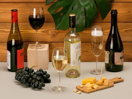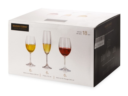 Подарочный набор из 18 бокалов для красного, белого и игристого вина. В наборе по 6 шт. каждой модели. Поставляется в индивидуальной цветной коробке.