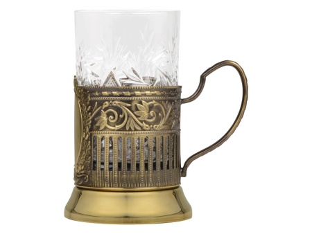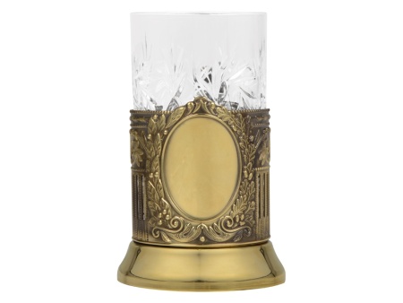 Подстаканник со стаканом и ложкой. Подстаканник латунный, хрустальный стакан.
