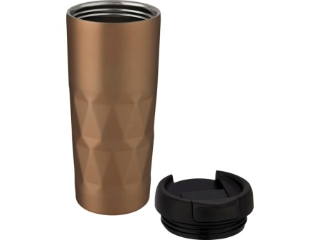 Медная кружка с двойными стенками, вакуумной изоляцией и навинчивающейся крышкой с защитой от проливания со сложным геометрическим дизайном. Благодаря изоляции и нержавеющей стали 18/8 напитки несколько часов остаются горячими или холодными. Без содержания BPA, протестировано и одобрено согласно немецкому законодательству о безопасности пищевых продуктов (LFGB), проверено на содержание фталатов согласно нормам REACH. Объем 450 мл. Рекомендуется мыть вручную. В подарочной коробке из переработанного картона.