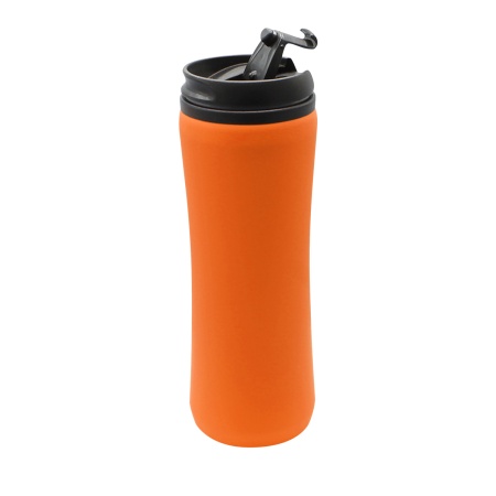 Термокружка изготовлена из нержавеющей стали с покрытием софт тач. Внутренняя колба сделана из пластика. Вакуумная конструкция. Объем термокружки – 500 мл.