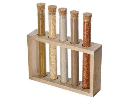 Специи идут в комплекте с миниатюрной и стильной подставкой. Благодаря наличию зон под нанесение, подаренный набор будет служить отличными напоминанием о дарителе.