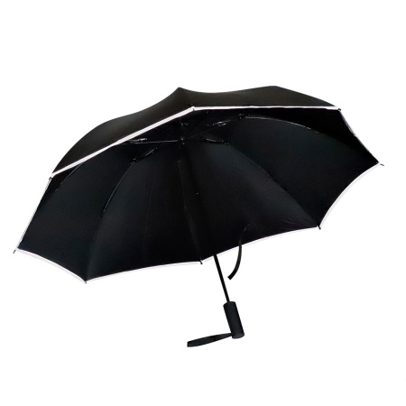 Автоматический противоштормовой складной зонт-наоборот Flash reverse со светоотражающей полосой – реверсивный зонт в необычном дизайне. Реверсивный (обратный) способ складывания/раскладывания купола выполнен таким образом, чтобы мокрая сторона спряталась внутрь. Зонт как бы вывернут на изнанку. В итоге внутренняя (сухая) сторона становится наружной, а та, что намокла от дождя, остается внутри. Легким движением - купол выворачивается в обратную сторону (противоштормовая функция). Материал купола – эпонж со светоотражающей кромкой. Вы будете замеченным со светоотражающими полосами зонта и останетесь в безопасности в темную дождливую погоду. На материале зонта вода превращается в капельки и скатывается, а сам зонт остается сухим. Ветрозащитная функция – спицы из стекловолокна, а специальное устройство препятствует поломке спиц при резких порывах ветра.