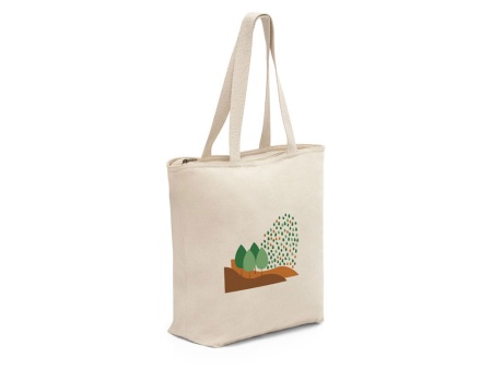 Сумка из 100% хлопка (280 г/м²) с молнией и внутренним карманом. Ручки из хлопковой тесьмы длиной 65 см. 480 х 480 х 150 мм, внутренний карман 180 х 140 мм