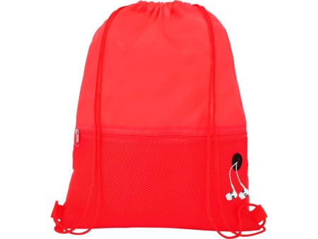 Рюкзак со шнурком и главным отделением на шнуровке в цвет изделия. Имеет один передний сетчатый карман на молнии и порт для наушников. Прочность до 5 кг.