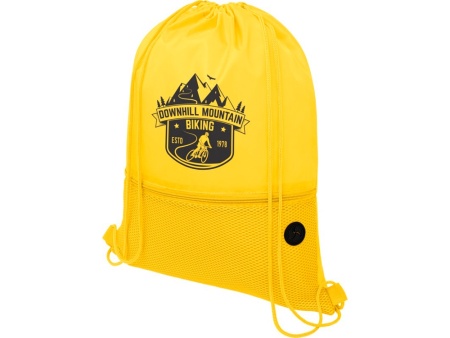 Рюкзак со шнурком и главным отделением на шнуровке в цвет изделия. Имеет один передний сетчатый карман на молнии и порт для наушников. Прочность до 5 кг.