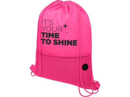 Рюкзак со шнурком и главным отделением на шнуровке в цвет изделия. Имеет один передний сетчатый карман на молнии и порт для наушников. Прочность до 5 кг.