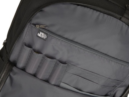 Рюкзак Vault для ноутбука 15.6 с защитой RFID. Изящный, современный рюкзак для ноутбука 15,6 с большим передним карманом на молнии с карабином для ключей, и скрытым карманом с защитой RFID, чтобы защитить ваши карточки и паспорт от кражи личных данных. Большое основное отделение вмещает ноутбук 15,6 и специальный карман для IPad или планшета. Плотная спинка. Передняя вертикальная молния разработана, чтобы дать вам быстрый доступ к переднему карману. 2 дополнительных боковых кармана для большего места, регулируемые, мягкие ремни рюкзака позволят прикрепить к ним дополнительные аксессуары. Ручка вверху и стропа для крепления к чемодану. 600D полиэстер с акцентами из ПУ винила.