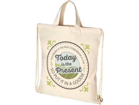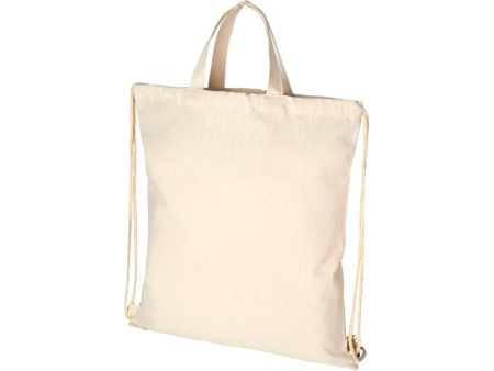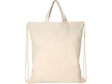 Вторичный хлопок изготавливается из отходов, предназначенных для потребления, которые производятся текстильными фабриками в процессе резки. Большое основное отделение затягивается хлопковым шнурком. Имеет две спадающие ручки высотой 14 см. Прочность до 5 кг.