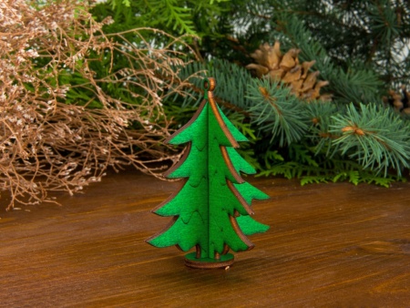 Елочная экоигрушка в виде главного новогоднего дерева – атмосферный и праздничный сувенир. Елочка изготовлена из березовой фанеры и украшена тонировкой красного и зеленого цвета. Этот небольшой новогодний презент отлично укладывается в концепцию экоподарка, при производстве и тонировании используются натуральные материалы и красители.