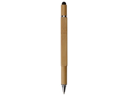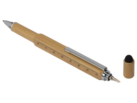 Четырехгранная шариковая ручка с поворотным механизмом в бамбуковом корпусе сочетает несколько полезных функций: