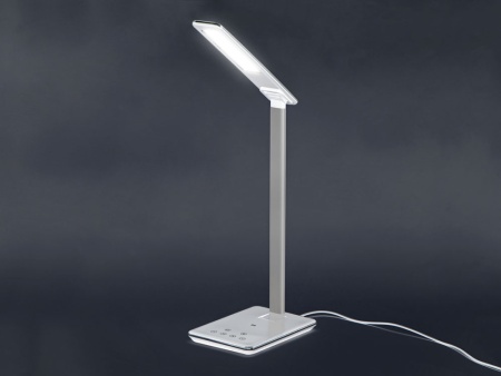 Умная функциональная настольная лампа с 3 режимами освещения: теплый желтый свет, нейтральный свет и холодный свет. Равномерно мягкий свет приятен и безопасен для глаз (отсутствует мерцание). На панели основания лампы можно также регулировать яркость и ставить таймер отключения (1 или 2 часа). В лампе предусмотрена беспроводная зарядка Qi-совместимы устройств, чтобы зарядить смартфон – просто разместите его в центре основания, и зарядка автоматически начнется. Выходной порт USB для проводной зарядки устройств. Благодаря продуманной конструкции лампа может принимать практически любые положения.