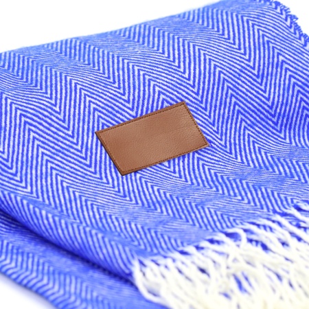 Плед SAMUM изготовлен из высококачественной акриловой пряжи, что позовляет добиться мягкости и тепла как от натуральной шерсти. Благодаря составу плед легкий, хорошо сохраняет теплоизолирующие свойства и надолго радует внешним видом. Также гипоаллергенен, не накапливает статическое электричество и легко стирается. Плед имеет классический узор “елочка”, с бахромой по краям. Для нанесения логотипа предусмотрена нашивка из кожзама (8 x 4 см). Плед упакован в пластиковый пакет, сложен в виде рулона с текстильным держателем.