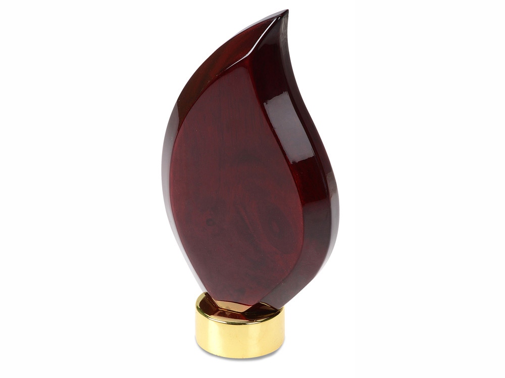 Деревянная плакетка для дарственной надписи в виде языка пламени может стать символичным подарком или знаком отличия для сотрудника нефтяной или газодобывающей компании. На плакетку, а также на металлическую подставку можно нанести символику компании и благодарственную надпись.
