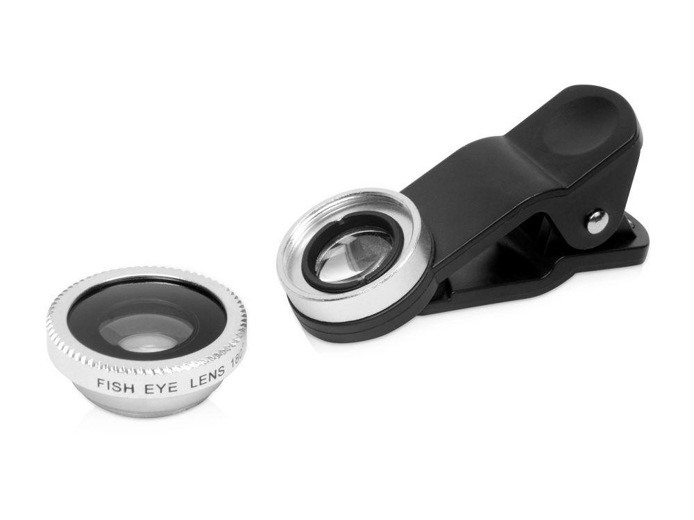 Универсальный набор из 3 линз (объективов) для смартфона. Подходит как для внешних, так и для камер селфи. В наборе: широкоугольный объектив (0,4 х), объектив рыбий глаз (180°) разбирается на 2 части, одна из них - объектив для макросъёмки, зажим-прищепка для крепления объективов, инструкция, пластиковый бокс, защитные крышки для объективов, мягкий чехол.