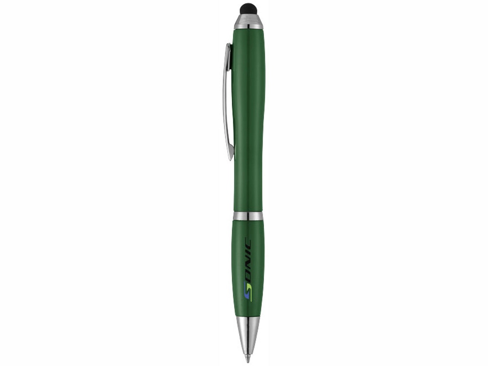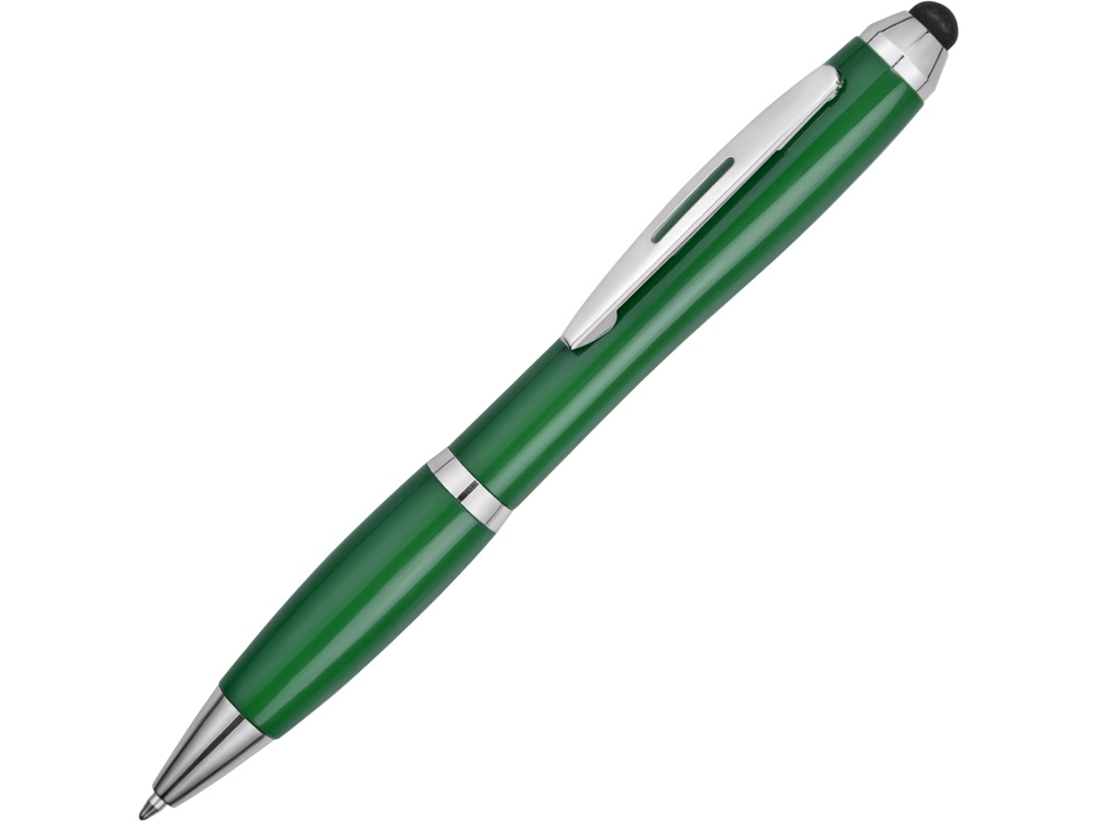 Nash - черная шариковая ручка со стилусом. При нажатии стилуса логотип подсвечивается в цвет стилуса. Включены 3 батареи LR41. ABS& AS plastic.