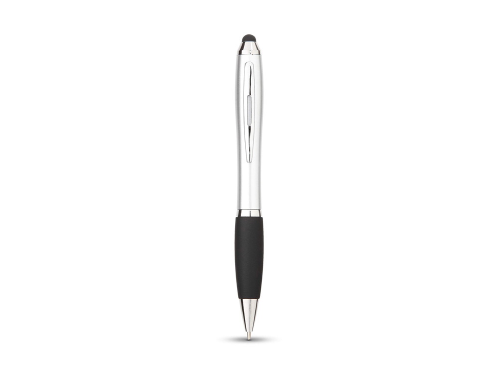 Nash - черная шариковая ручка со стилусом. При нажатии стилуса логотип подсвечивается в цвет стилуса. Включены 3 батареи LR41. ABS& AS plastic.