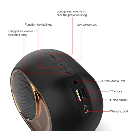 Функции: Bluetooth, Hands free, TF card, AUX, USB, FM