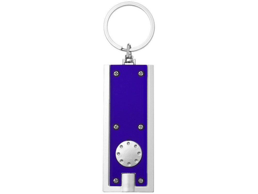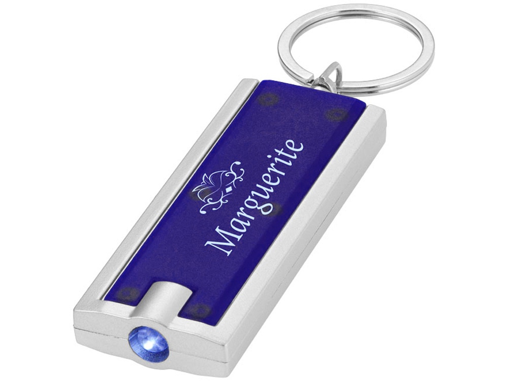 Брелок с ярким светодиодным фонариком с кнопкой. Металлическое кольцо для ключей. Батарейки включены в комплект. АБС-пластик.