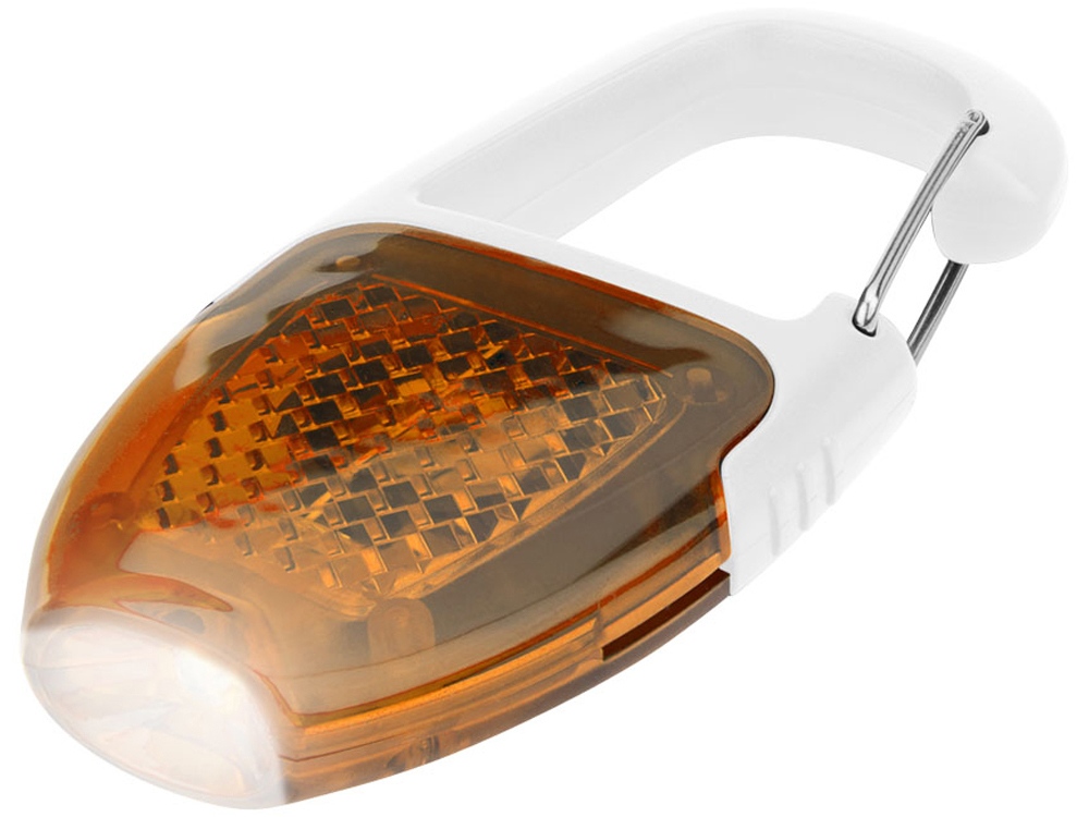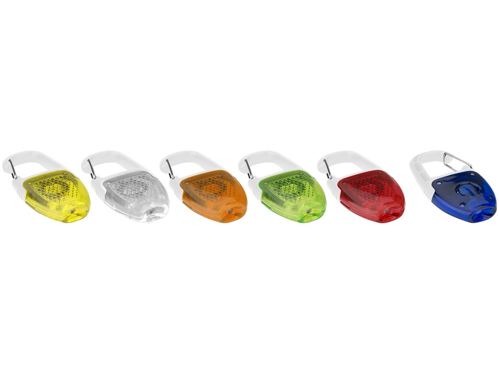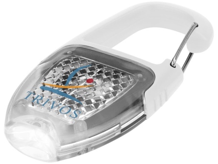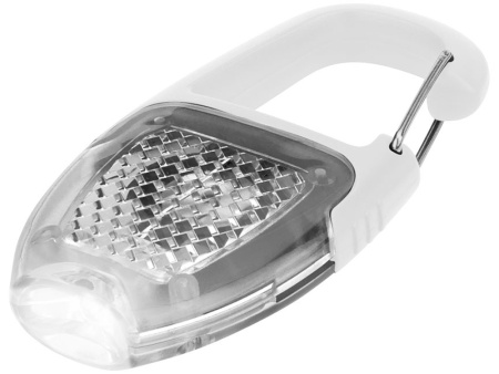 Брелок - фонарик с отражателем и карабином. Отражающий диодный фонарик с хромированным клипом и кнопкой включения/ выключения. Батарейки в комплекте. АБС пластик.