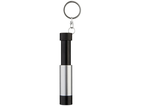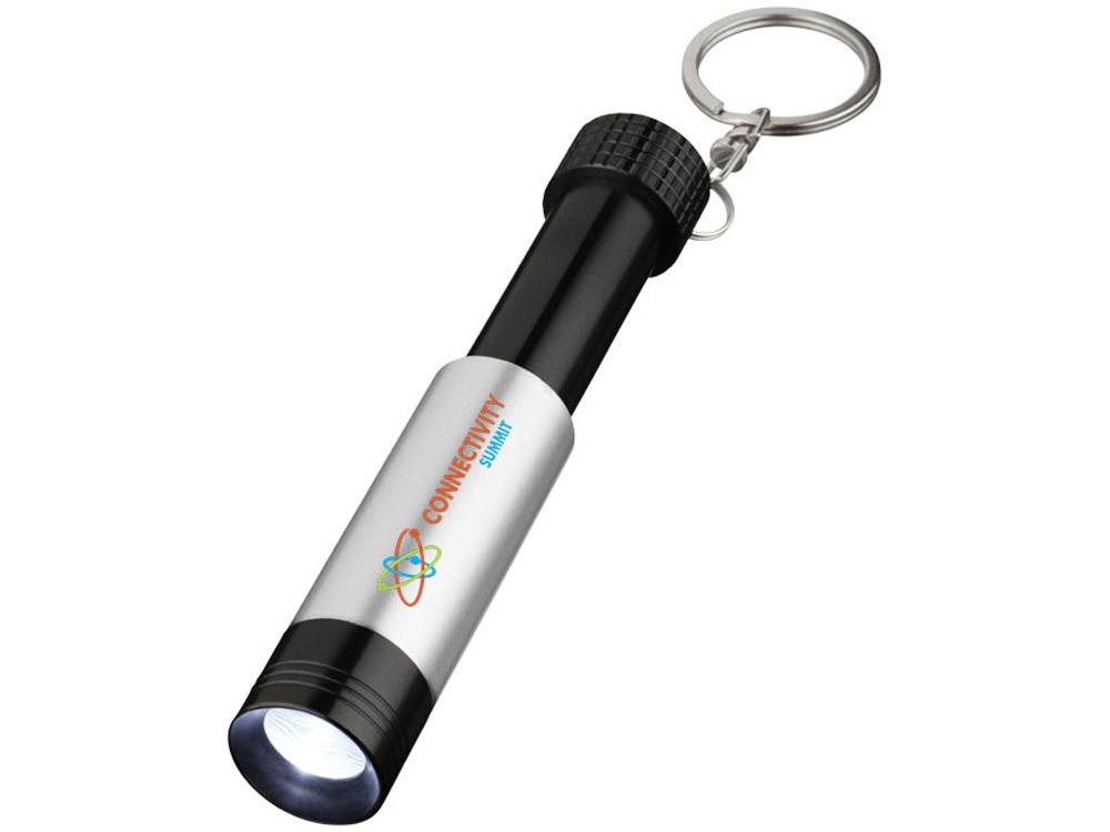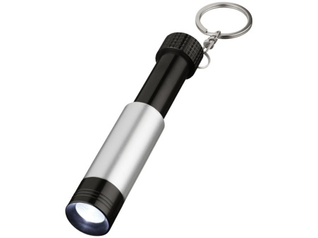Фонарик с белым светом LED и кнопкой включения сзади. Идеально подойдёт для гравировки. Металлическое кольцо для удобной переноски. В комплекте также батарейки.
