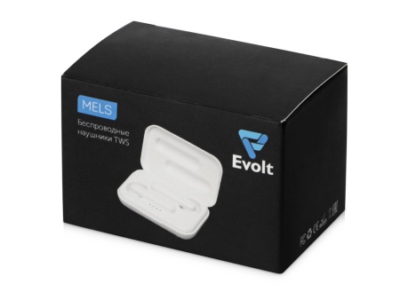 Беспроводные наушники Mels бренда Evolt обеспечивают до 16 часов суммарного воспроизведения музыки и работают на расстоянии до 10 метров от сопряженного с ним смартфона или иного гаджета. Зарядный чехол имеет разъем mini USB, внутри которого есть шкала заряда, состоящая из четырех делений.