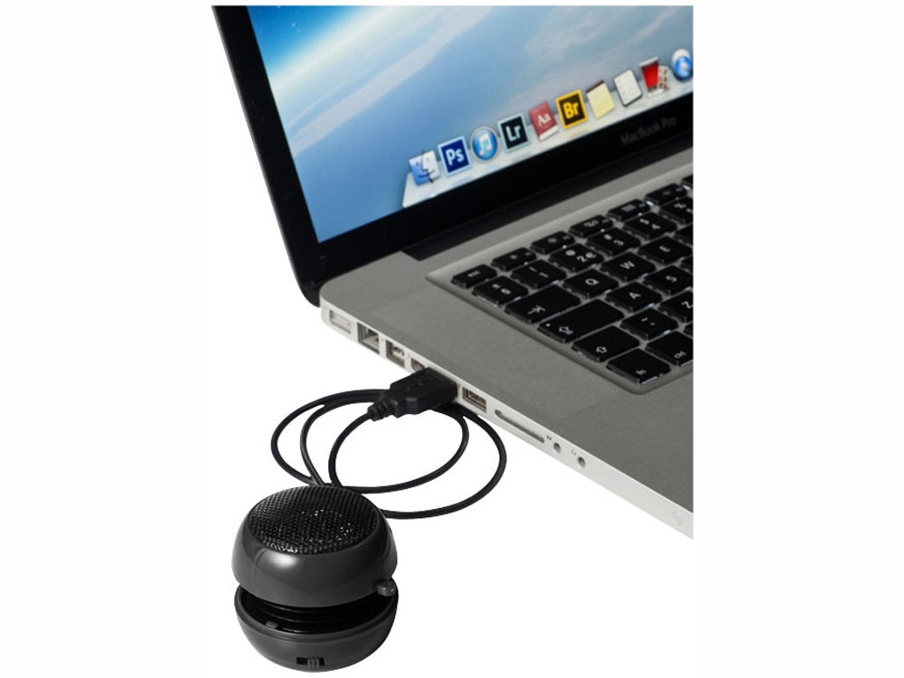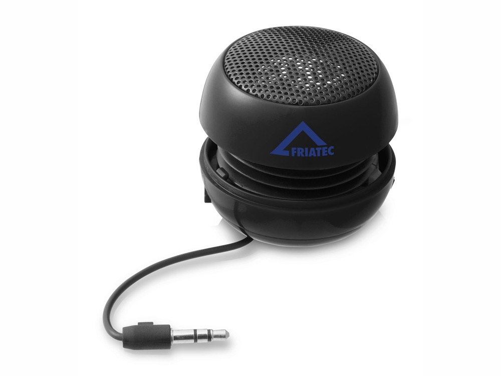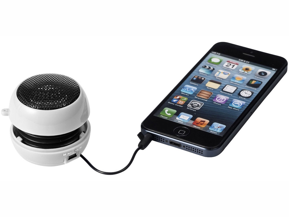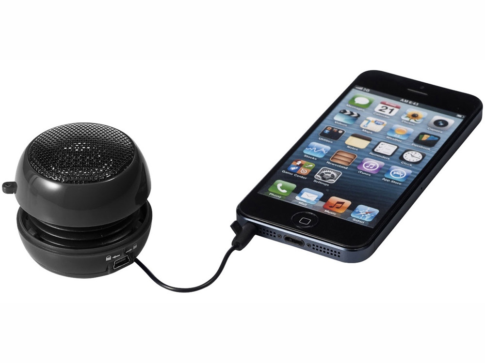 Портативная звуковая колонка со встроенным перезаряжаемым аккумулятором, предназначенная для воспроизведения звуковых файлов в течение 2 часов. Колонка подключается к любому смартфону, планшету или аудиоустройству со встроенным 3,5 мм аудиоразъемом. Включает USB-кабель для зарядки.