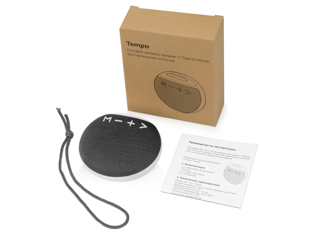 Если вы ищите надежную и стильную портативную колонку, закажите Tempo! Она выигрышно подчеркнет бренд компании с помощью таких методов, как термотрансфер, УФ-печать и тампопечать. У Tempo стильный дизайн, контрастный цвет кнопок и задней крышки, а также удобное крепление для переноски. Колонка обтянута акустической тканью, проигрывает музыку со стандартной USB флешки или micro SD карты. Tempo позволяет принимать звонки и имеет режим радио.