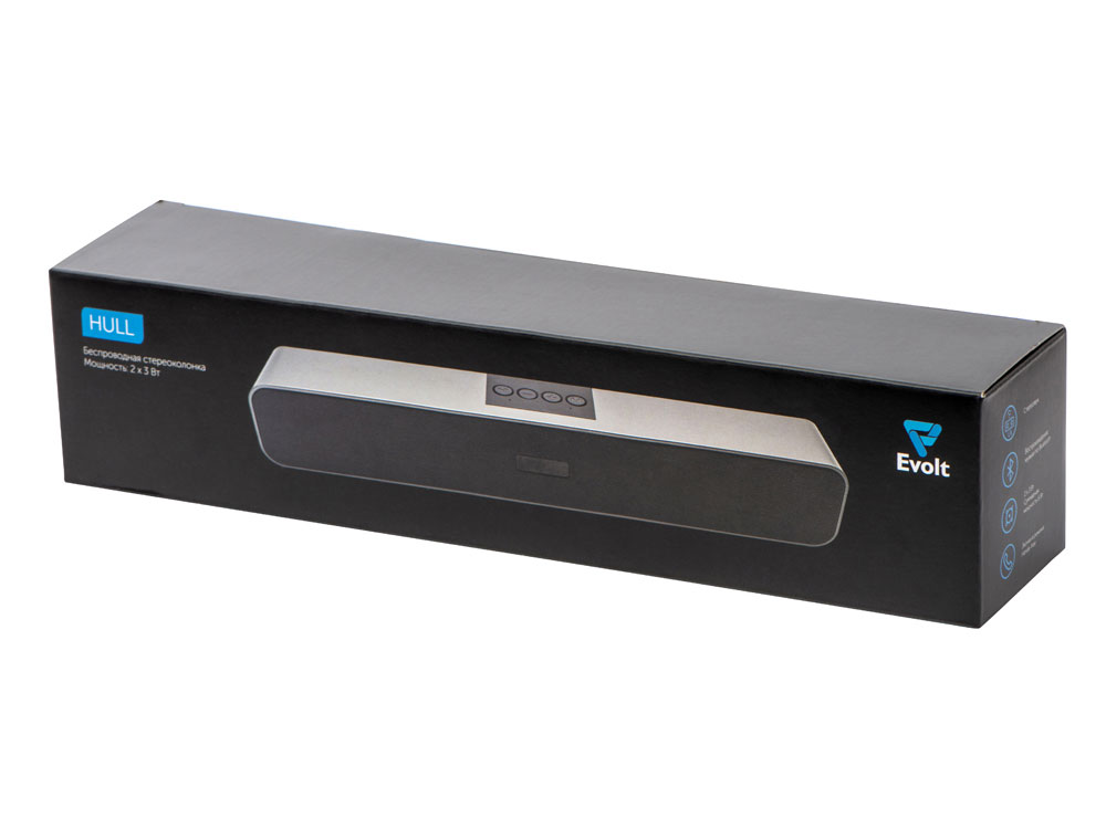 Портативная стереоколонка имеет два динамика по 3 Вт каждый, которые стереофонически распределяют звук. Саундбар воспроизводит музыку с USB-флешки и с SD-карты, а также по Bluetooth.
