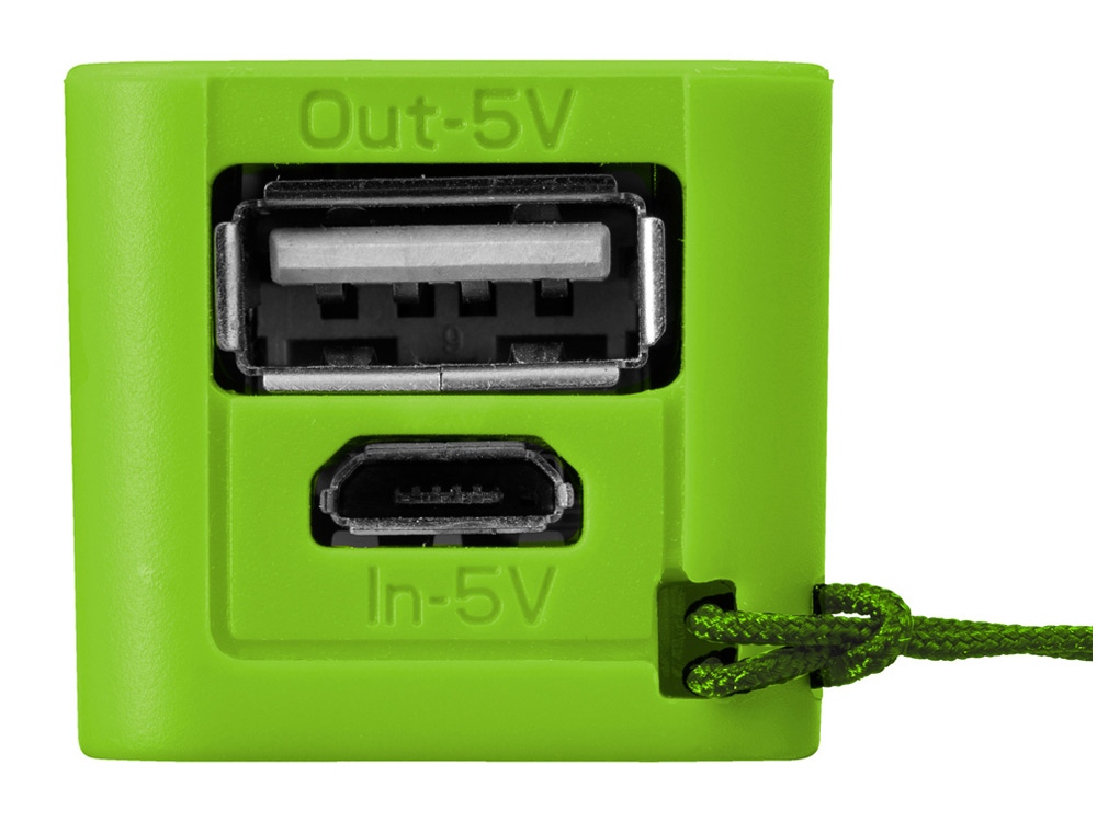 Зарядное устройство с аккумулятором емкостью 2000 mAh и светодиодным индикатором для обозначения зарядки. Зарядное устройство заряжается через кабель USB в течение около 2 часов.