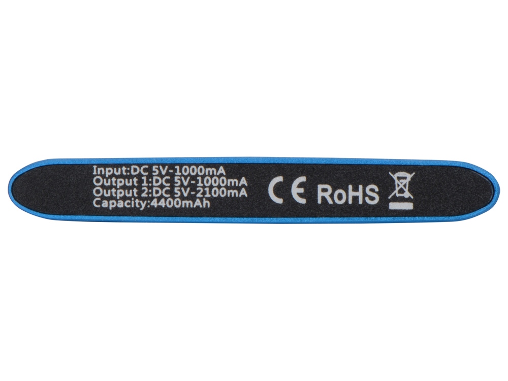 Корпус портативного зарядного устройства Мун изготовлен из металла синего цвета. Емкости портативного аккумулятора 4400 mAh хватит, для того, чтобы подзарядить ваш телефон или планшет в течение дня. Два USB выхода на 1А и 2.1А позволяют заряжать одновременно несколько устройств.