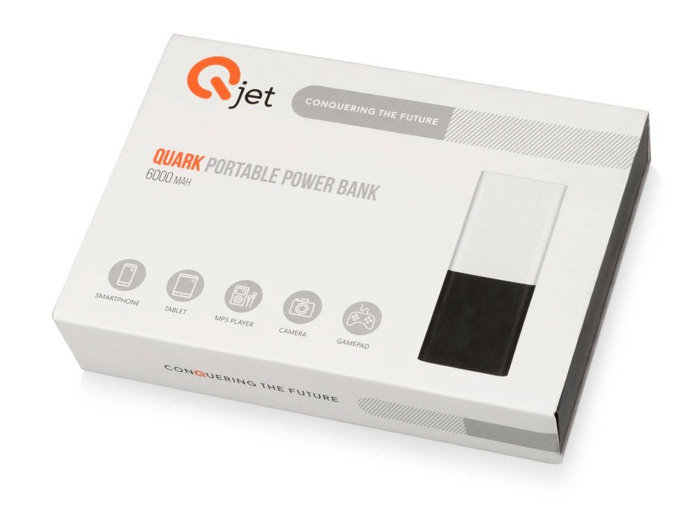 Внешний аккумулятор Quark от бренда Qjet емкостью 6000 mAh всегда обеспечит ваш любимый телефон энергией. Корпус зарядного устройства изготовлен из алюминия с покрытием soft-touch. На поверхность пауэрбэнка можно нанести гравировку, которая будет вскрываться при помощи подсветки. Подсветка активируется при движении или подключении телефона к устройству.