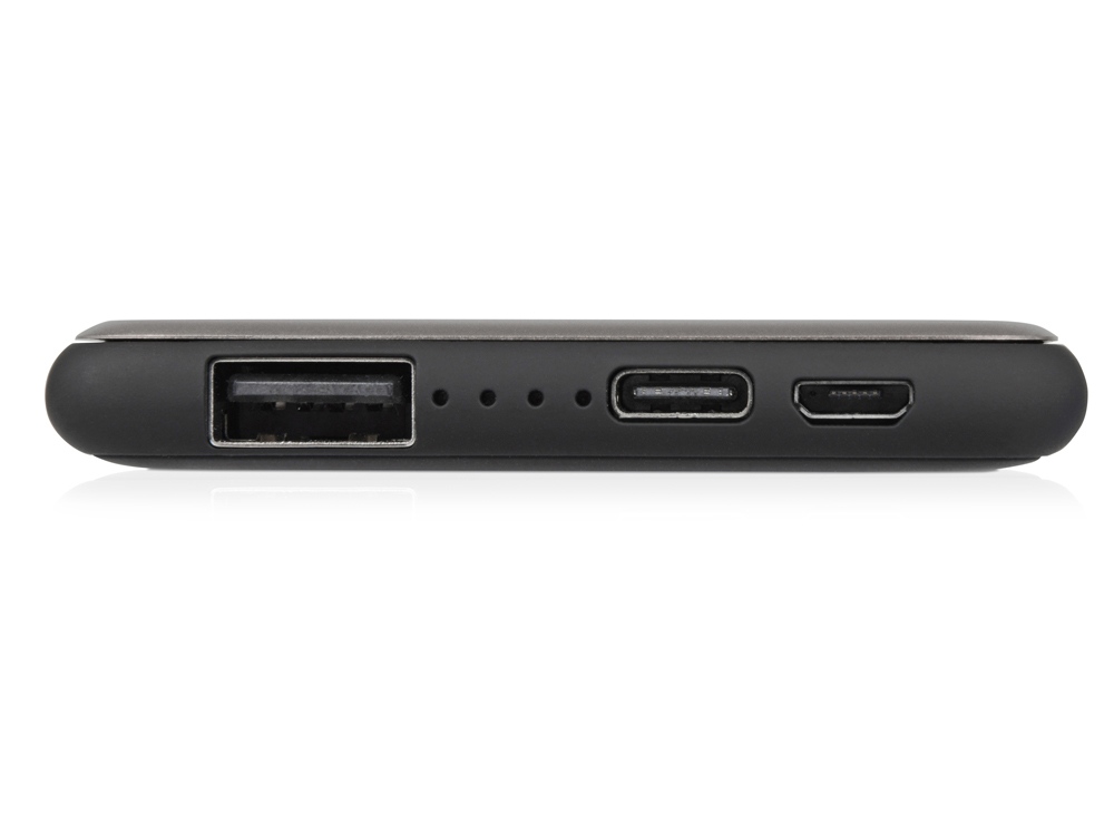 Компактный внешний аккумулятор линейки Shell представляет собой идеальное сочетание металла и АБС-пластика с покрытием soft-touch. Благодаря такому сочетанию на корпус возможно нанесение как методом гравировки, так и методом УФ-печати. Боковые стороны устройства также имеют покрытие soft-touch, за счет чего повербанк надежно лежит в руке. Имеетcя два входных разъема для зарядки аккумулятора на выбор - micro USB и USB Type C. Кабели micro USB, Lightning, USB Type-C в комплекте.