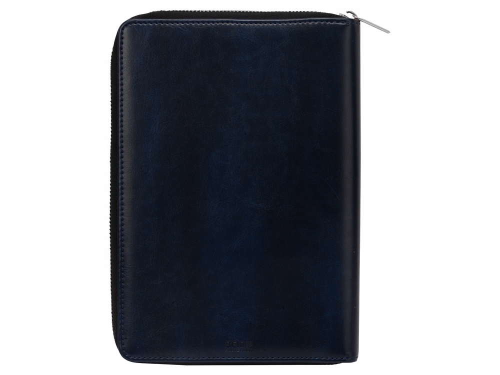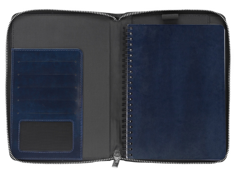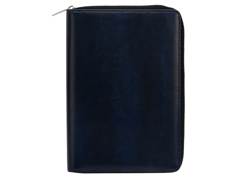 Бизнес блокнот Fabrizio состоит из пенала на молнии выполненного из искусственной кожи, и сменной тетради на 80 листов на кольцах с перфорированными линованными листами белого цвета.