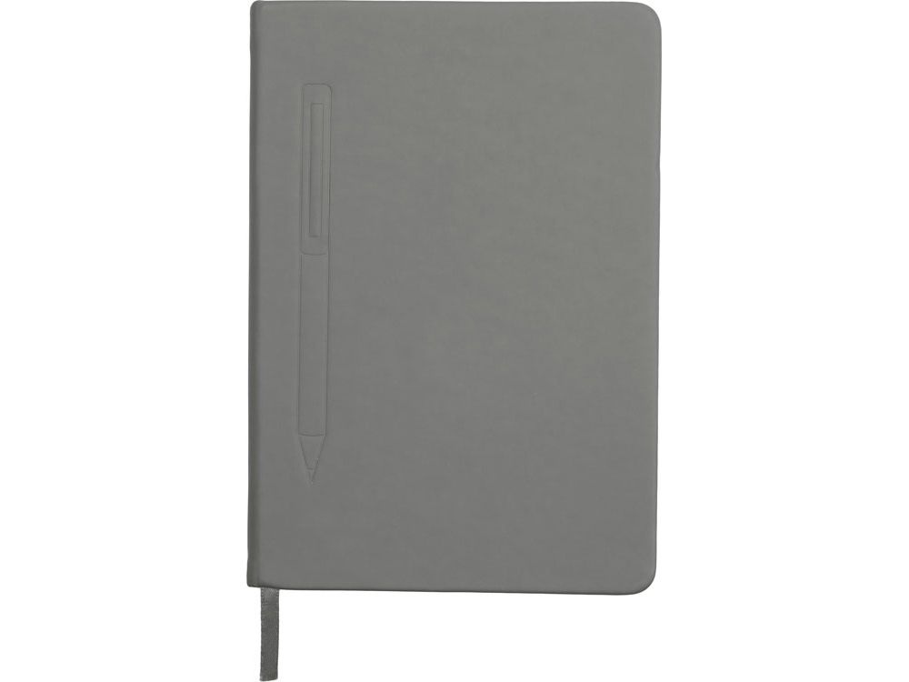 Блокнот формата А5 в твердой обложке со скруглёнными углами и блоком в линейку на 80 листов. Благодаря скрытой магнитной ленте на блокноте можно легко и надежно закрепить металлическую ручку. Зона с магнитом обозначена тиснением в форме ручки.