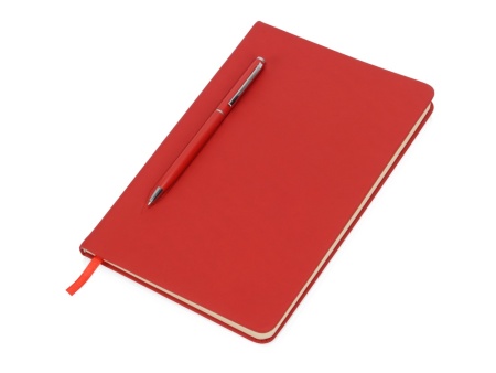 Блокнот формата А5 в твердой обложке со скруглёнными углами и блоком в линейку на 80 листов. Благодаря скрытой магнитной ленте на блокноте можно легко и надежно закрепить металлическую ручку. Зона с магнитом обозначена тиснением в форме ручки.