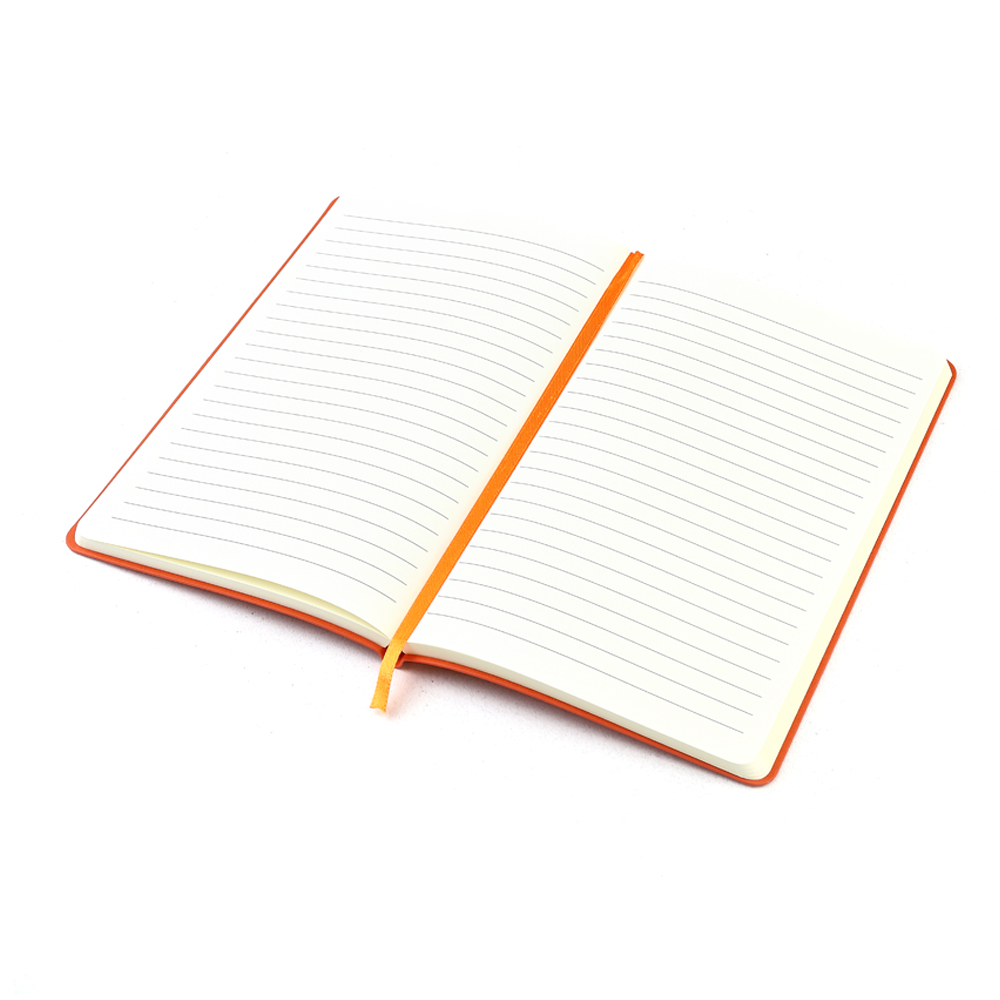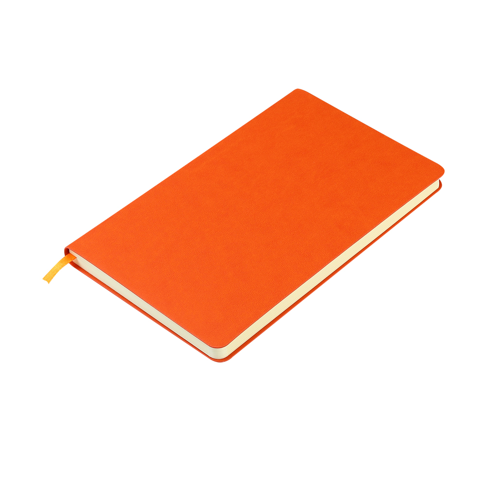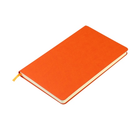 Блокнот формата А5 с мягким покрытием из PU-материала с имитацией рисунка кожи, с текстильной закладкой в цвет блокнота, 256 страниц, плотность 70г/м, страницы с черными линиями. Цвет по PANTONE® (максимально приближен): 186C.