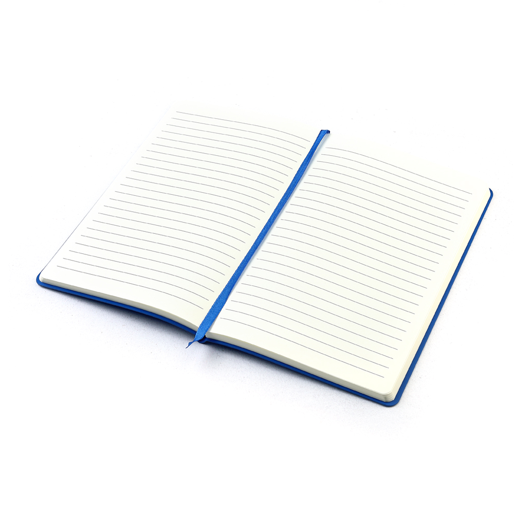 Блокнот формата А5 с мягким покрытием из PU-материала с имитацией рисунка кожи, с текстильной закладкой в цвет блокнота, 256 страниц, плотность 70г/м, страницы с черными линиями. Цвет по PANTONE® (максимально приближен): 186C.
