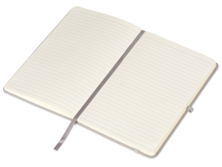 Лаконичный дизайн, приятная на ощупь твердая обложка имеет фактуру ткани. В блокноте 160 линованных страниц кремового цвета с плотностью 80 г/м2, петля для ручки, лента-закладка и удобный карман для карточек и записок.