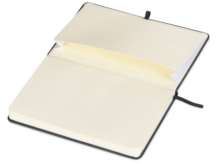 Лаконичный дизайн, приятная на ощупь твердая обложка имеет фактуру ткани. В блокноте 160 линованных страниц кремового цвета с плотностью 80 г/м2, петля для ручки, лента-закладка и удобный карман для карточек и записок.